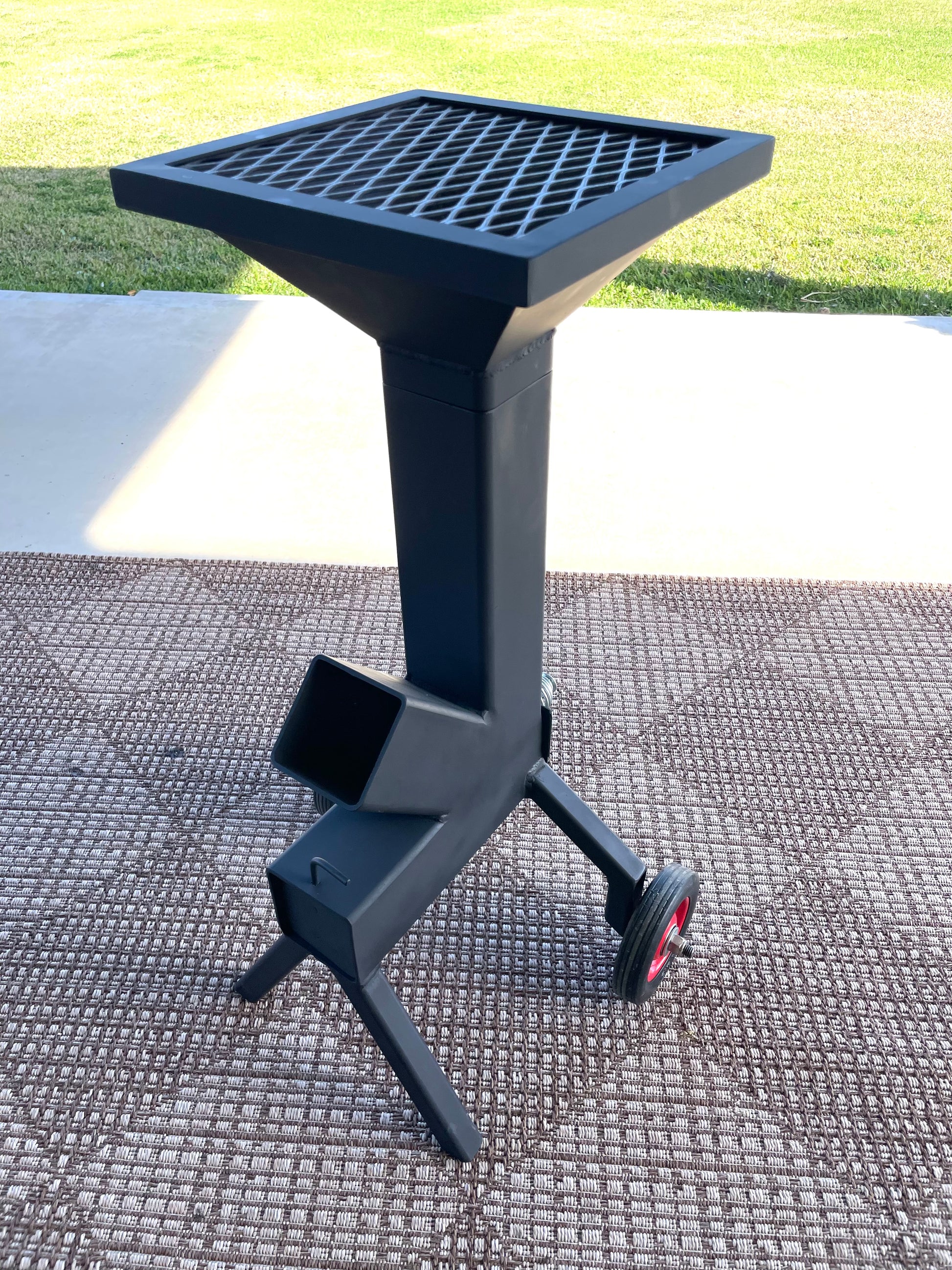 Made in Texas, our 4-inch Rocket Stove is perfect for deer leases, camping, and off-grid cooking. Please allow 1–2 week lead time.